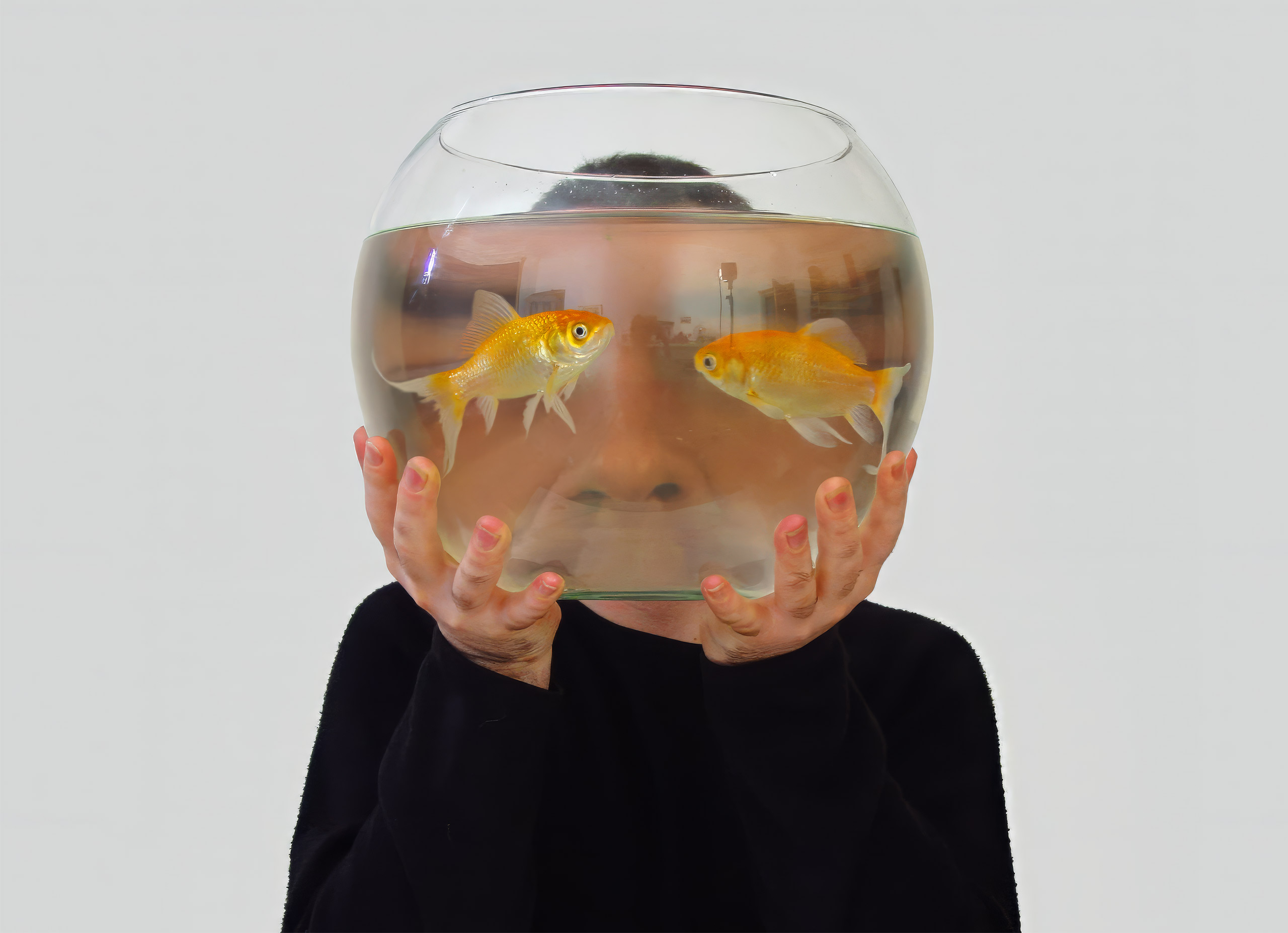 “I held a goldfish bowl in front of my face in my studio. Two fish swam in front of my line of vision”.